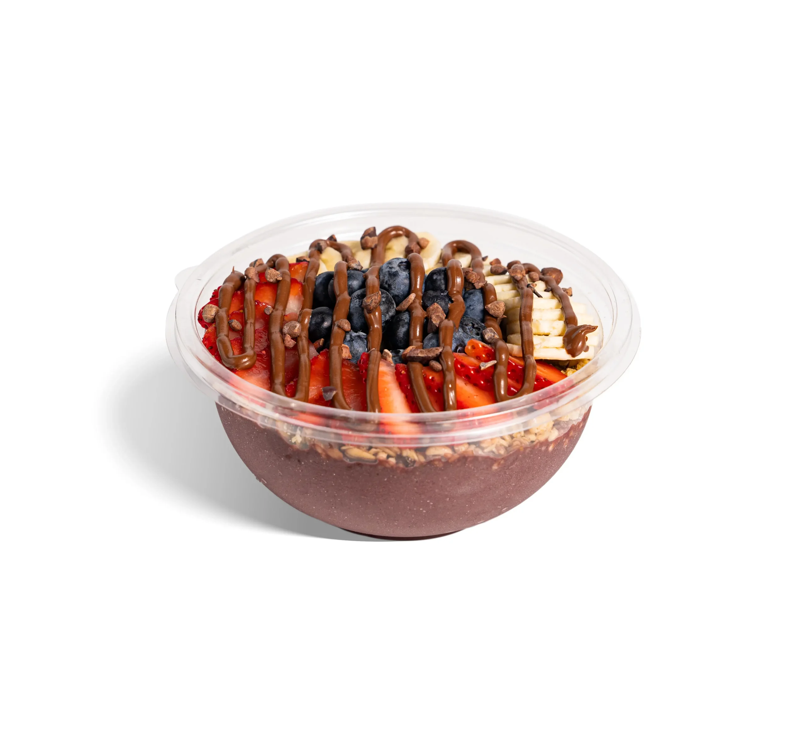 Discover the Chocolate Hazelnut Acai Bowl, where a smooth blend of antioxidant-rich acai, creamy banana, and almond milk creates the perfect base. Crowned with rich chocolate hazelnut butter, fresh strawberries, juicy blueberries, crunchy cacao nibs, and hearty hemp granola, every bite is a crave-worthy blend of indulgence and nutrition. Treat yourself to a bowl that’s pure decadence, with a healthy twist!