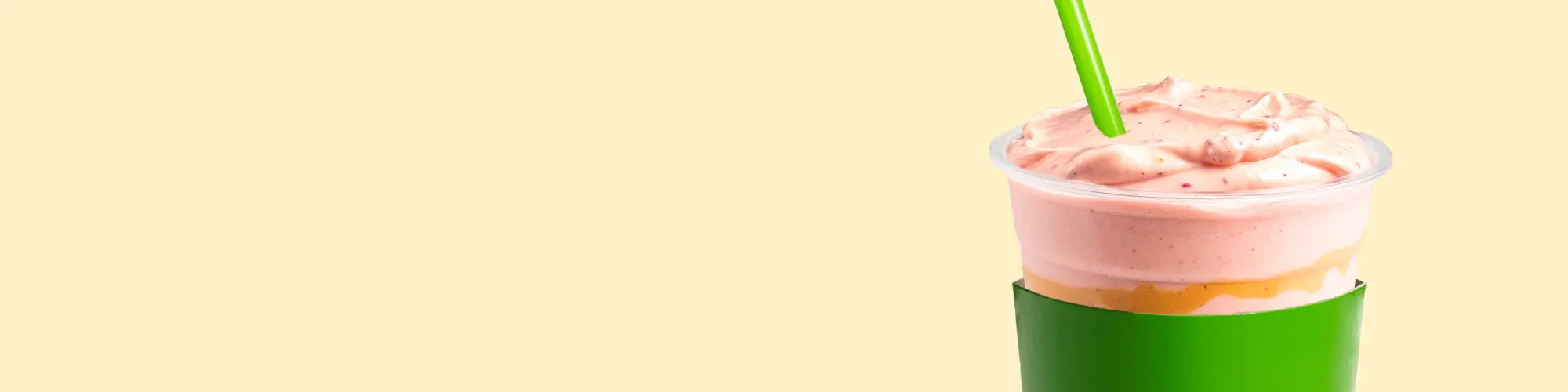 Handcrafted and made-to-order with peanut butter, strawberry, grass-fed whey protein, banana, almond milk, raw honey, PB swirl
